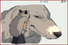 Mononoke Hime/San buries her face in her mother Moro's fur.